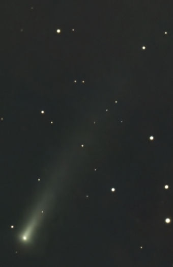 Auf der Aufnahme von Frank Vohla vom selben Morgen ist der Komet gegenüber den Hintergrundsternen versetzt. Eine Bewegung war bereits nach einigen Minuten erkennbar.