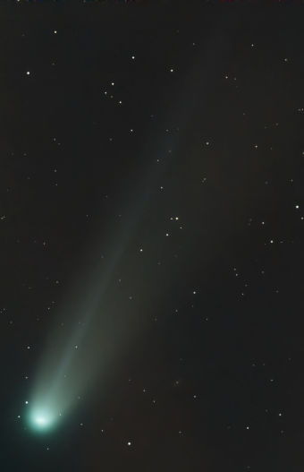 Eine Aufnahme von Andreas Lawrenz einen Tag später: Bei der längeren Brennweite von 390 mm sind Strukturen im Schweif zu sehen.