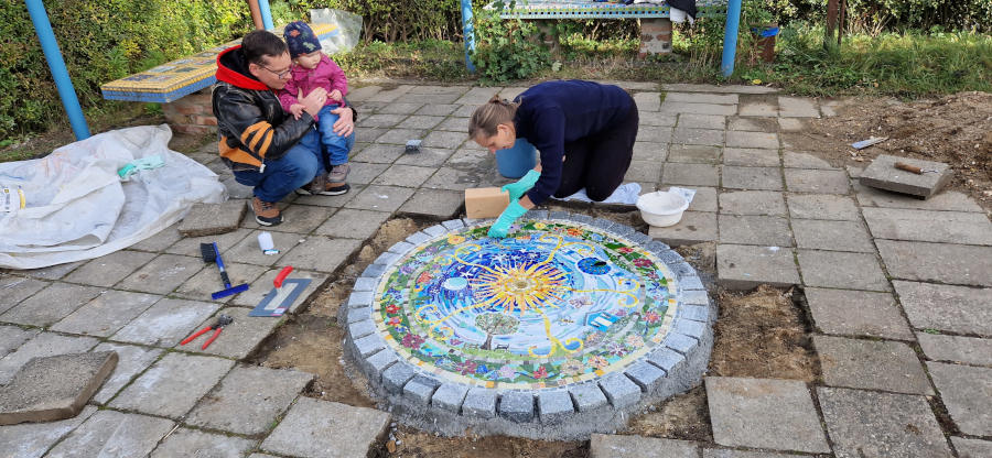 Vor Beginn wurde ein Glasmosaik der Leipziger Künstlerin Viktoria Scholz an die vorbereitete Stelle auf dem Vereinsplatz gebracht. Die Herstellung des Mosaiks hatte zwei Wochen gedauert. Viele Menschen innerhalb und außerhalb der Gartenanlage Einheit hatten daran mitgearbeitet und eigene Ideen eingebracht. Dadurch enthält es eine Vielzahl von Details. Die Arbeiten am Mosaik gehörten nicht unmittelbar zum Astronomietag, doch es enthält einige astronomische Themen.