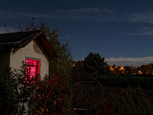 Aus dem Laubenfenster fiel astrotypisches Rotlicht.