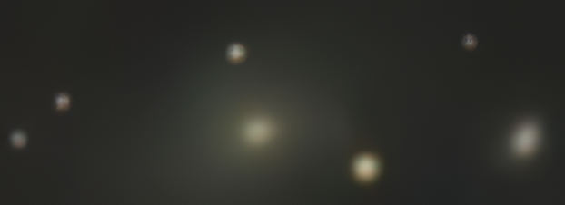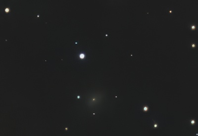 8. Mai: Zum Schätzen der Helligkeit können inzwischen die beiden Sterne unterhalb und rechts der Galaxie herangezogen werden. |