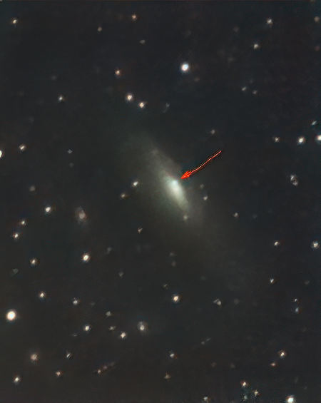 27. Mai: SN 2025fvw ist nur noch wenig heller als der schwache Stern oberhalb der Galaxie. |
