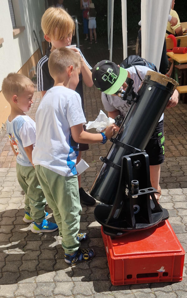 Für Kinder mit Lust auf Naturwissenschaften stand ein 15cm-Dobson zur Beobachtung der Sonne bereit. Das Angebot wurde angenommen.